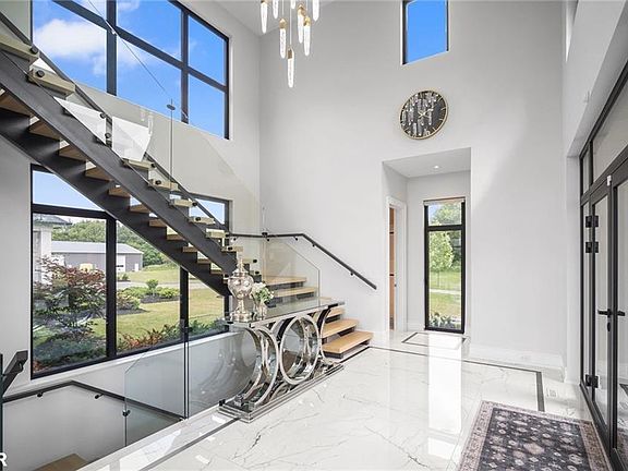 Soaring cathedral ceilingsDramatic black marble accentsTop-of-the-line imported finishesHigh-end designer lightingBlack-framed floor-to-ceiling windowsNatural lightSerene outdoor views