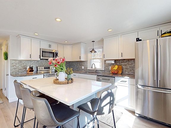 Move right into this remarkably maintained home. Neutral colors throughout this updated Cape with plenty of natural light. Spacious kitchen is open to living room which makes it super easy to entertain. Kitchen features plenty of cabinets, ss appliances, granite counters along with a floating island that doubles as a breakfast bar. Living room has a great built in and hardwoods. Enjoy this Summer in the adorable back yard with a firepit area, patio, tool shed, fencing and plenty of level space to play. If it is too hot outside come in for the newly added air conditioning mini splits other updates include 2019 new heating system, new oil tank, an added insulation for energy savings. Flexible layout with 4 bedrooms 1 full updated bath. Fourth bedroom is being used as a playroom but can also be used as a dining room or bedroom, so many options! Upstairs 2 sizable bedrooms with young neutral carpet. Located near tons of shopping/ restaurants, commuters dream close to RT 90,RT 146, RT 20