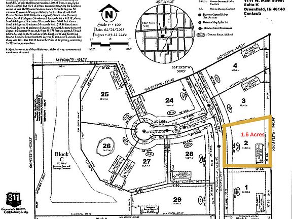 Welcome to Rockfield Estates, a new custom home community located between Greenfield Indiana and New Palestine Indiana within Southern Hancock Schools. This neighborhood provides direct access to the Pennsy Trail, a paved and maintained walking and biking trail that allows convenient outdoor recreation. Rockfield Estates offers 1.5 to 2 acre lots with options that include cul-de-sac locations, pond views and tree-lined settings. The community features natural gas, streetlights and sidewalks. Soil testing has been completed, and well and septic are required. Lot 2 includes 1.5 acres with a private rear setting. Community guidelines allow fences and 2400 square foot pole barns. Minimum home size is 2400 square feet for a one story and 2600 square feet for a two story, with at least 1600 square feet required on the main level. Vinyl siding is not permitted. Approved builders are required. Joyner Homes is currently the approved builder for Rockfield Estates and can build custom plans or offer their available designs. Other builders may be considered with developer approval when submitted at the time of the lot offer. Additional lots are available and reservations may be made while inventory remains available.