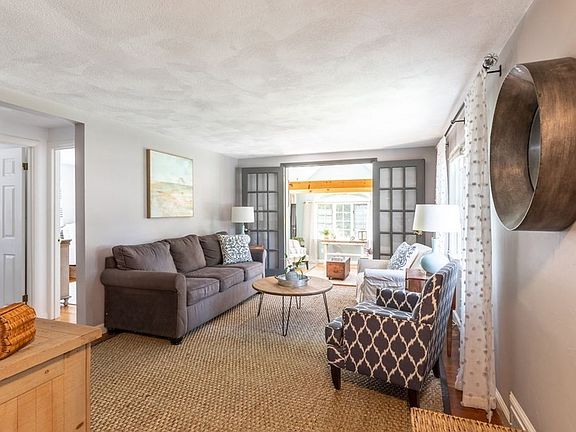 Charming 3 BR,1.5 BA Cape situated on a corner lot in desirable neighborhood. Extensive New Landscape design transformed this property into a private oasis. Lush gardens surround the home. New fenced-in yard w/ many outdoor seating/dining areas. Enjoy the ambiance of an outdoor fire pit on cool evenings. Composite deck. Bright & Airy Kitchen w/ white cabinetry, Corian counters, all New shelving, pendant light, accent BB, colorful flooring, SS appliances & Built-in coffee station. Open Dining Rm w/ FP, HW & New lighting. Inviting Family Rm w/ HW* & French Doors opens to Beautiful 4-Season Sunroom w/ Cathedral ceiling, gorgeous Palladian window, Skylights, HW, Built-in bookcase & wood stove ~ A relaxing retreat. 1st Fl BR w/ HW & closet. New 1/2 BA w/ laundry. 2nd level has Full BA w/ New lighting, & 2 generous BR's w/ painted HW, ceiling fan, ample closets & storage space. Freshly painted interior throughout. Updated electrical. Storage Shed. New 3-BR Septic (1YR). Expansion potential!!