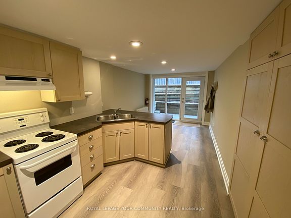 Treat yourself! Recently renovated 850 Sq. ft. single bedroom plus den lower-level only* apartment in respectful "Markham Village" steps to Main Street near Hwy 7/ 48. Exceptional location with Bus access, GO Train, Star Bucks, Main St. shops/amenities an easy walk away! Carpet free with easy to maintain Luxury wide-plank vinyl laminate floors and tile throughout! Sumptuous heated bathroom floor! Convenient single parking, with 2nd parking for small cars available at extra cost. Thoughtful lighted walkway and spacious private terraced entrance suitable for barbecues and bird watching in the trees! Expansive rooms complimented by large windows with venetian blinds throughout. Private storage area. Steps to multi-use trail system, library and Village Arena. Singles, retirees and professionals have enjoyed with long average tenancy periods over the lifetime of this unit, It is a keeper! Gas, water, hydro utilities included. See Video media link, floor plan and HoodQ info available in tab links. Extras: Convenient parking and private storage area.