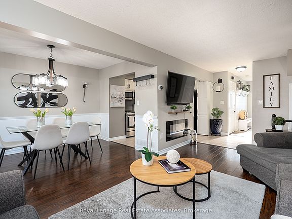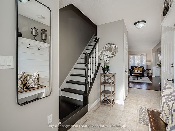 Welcome to unit 16 in 2 Royalwood Court, one of Stoney Creek's most beautiful townhomes with no neighbours behind in one of its nicest & best-located complexes! This stunningly renovated 3 bedroom, 3 bathroom home has a fully fenced private yard, low fees and backs onto quiet treed greenspace & the whole complex backs onto parks and fields! The designer main level has a stunning entrance foyer w/ garage access & a renovated powder room.Beautifully renovated kitchen w/quality GE stainless appliances, deep pot drawers, 2 great pantry cupboards, b/in wine storage & over range microwave. Spacious open living/dining room has updated flooring, b/in fireplace and double French door walkout to yard! Solid wood stairs lead to an amazing upper level with large landing, 2 stunningly renovated bathrooms, huge primary bedroom with ensuite & 2 other great-sized bedrooms. All bedrooms have closet organizer shelving! The beautifully finished lower level has brand new flooring, spacious rec room, office area and one of the most beautiful townhouse laundry rooms ever! plus 2 great storage rooms. Brand new owned furnace and AC 2025! (Cost $13,000), Laminate floors throughout (no carpet!), upgraded baseboards, upgraded light fixtures. Tons of visitor parking in complex! Walk to schools, restaurants & stores. Don't miss this beautiful place!
