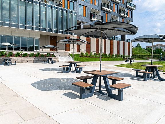 - Exterior features: Balcony, Community Room, Dock, Firepits, Golfing Simulator, Internet included in rent, Pet Park, Range/Oven, Study area, smart lockers, vending