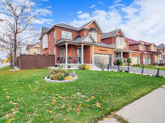 Absolutely Stunning! This show-stopper detached home sits proudly on a premium corner lot in one of Brampton's most desirable neighborhoods. Featuring 9' ceilings, this beautifully upgraded residence offers 3 + 2 spacious bedrooms and 4 modern washrooms.The main floor boasts a bright, open-concept living and dining area, along with a separate family room complete with a cozy fireplace. The upgraded gourmet kitchen features stainless steel appliances, elegant cabinetry, and a breakfast area with a walk-out to the fully fenced backyard - perfect for family gatherings and entertaining.Enjoy hardwood floors throughout the main and second levels, stylish wainscoting, oak staircases, and crown molding that add sophistication to every room. Pot lights inside and out create a warm, welcoming ambiance day and night.