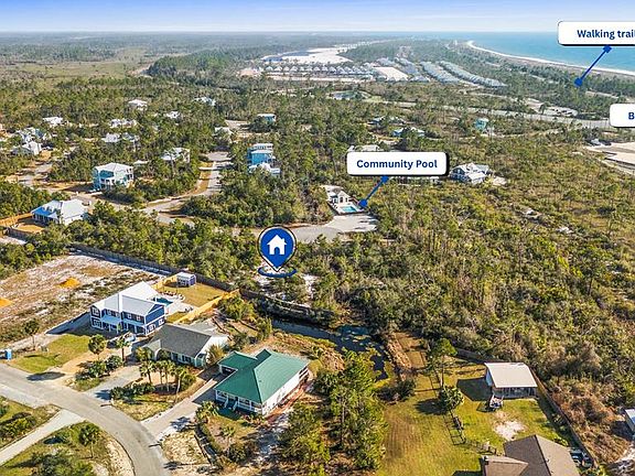 This is on of the lowest priced homesites, along the coast, from Mexico Beach to Port St. Joe. This charming lot is nestled in a quiet cul-de-sac, steps from the community pool, within the desirable Sunset Village community. Just a short walk to the Gulf and public beach access, you'll enjoy miles of scenic beachfront walking trails. This lot offers convenience and tranquility amidst 40 acres of lush conservation area. Sunset Village features winding streets, a community pool, low HOA dues, and architectural controls to maintain its coastal charm. Short-term rentals are not permitted, ensuring a peaceful neighborhood. Plus, with 95% of the lot in the X flood zone, you can build with confidence.