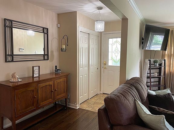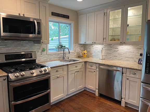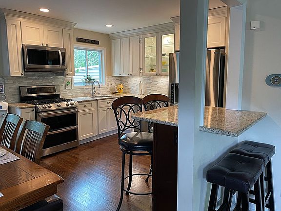 Beautiful updated 4 Bedroom 2 full bath split level home on quiet cul-de-sac. Property is located on a corner lot. This home has a open floor plan with Living Room, Dining room and updated kitchen. Stunning white cabinets and all stainless steel LG appliances with double oven. Granite countertops and cozy nook for 4 while enjoying your meal. Bonus room with separate entrance for an office or another extra bedroom. Hardware floors throughout. Minutes to NYC bus, schools, and rail. Sliders extend to a expanded deck for entertaining and great park like back yard. There is a walk up attic with fan that can also be converted to another bedroom. New energy efficient AC heating unit and hot water heater. Great school system. Move right in and make yourself comfortable. A must see.