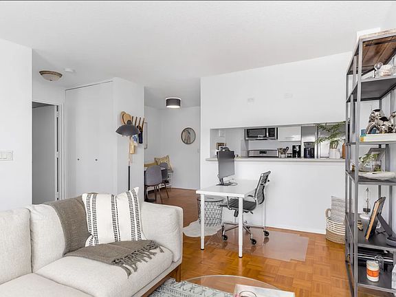 When you enter the apartment, there is a dedicated dining area. Utilize it as planned or it's the perfect spot for a desk and peloton! The large pass-through kitchen has tons of storage space and brand new stainless steel appliances. Next, the living area is perfect for any set up with two large closets flanking the marble bathroom.