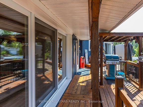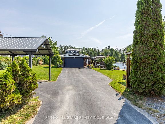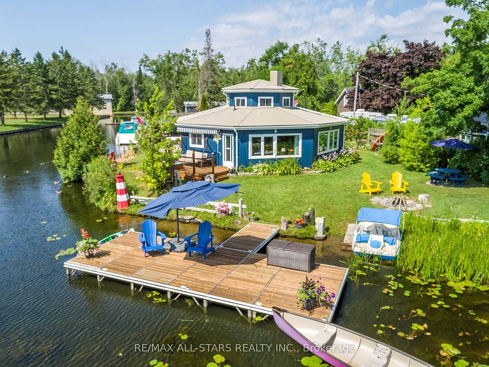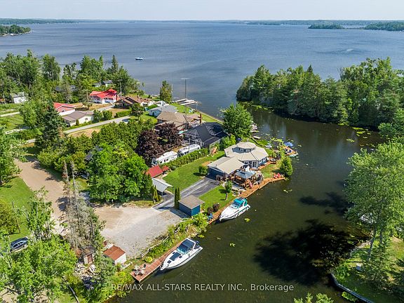 A Rare Waterfront Gem on Cameron Lake. Welcome to a one-of-a-kind retreat perfectly positioned between Lindsay and Fenelon Falls. This remarkable property boasts a total of 400 feet of waterfront, offering panoramic views, and an incredible lifestyle right at the waters edge. This unique home features 3 spacious bedrooms and a distinctive second-story turret-style bedroom. Truly a standout architectural detail. Inside, you'll find warm post-and-beam construction in the family room, a stunning fieldstone wood-burning fireplace in the living room, and a cozy propane fireplace in the family room for year-round comfort. The 5-piece ensuite offers a spa-like retreat, and the main bathroom is beautifully updated. Enjoy peace of mind with a new metal roof installed in 2025 along with many other upgrades. The layout is designed for seamless indoor-outdoor living. The family room offers walkouts to a large decks with a gazebo overlooking the water, perfect for entertaining or enjoying peaceful lakeside mornings. The living room features a walkout to a sun deck that also showcases stunning lake views, creating an effortless flow between inside and out. Step outside to enjoy multiple decks that stretch along the shoreline, a private hot tub with water views and ample docking for multiple large boats a rare feature for waterfront properties. Additional bonus lot space with extra dockage and water frontage, creating more parking or whatever your imagination desires. The property comes fully furnished, including outdoor water toys, making it entirely turnkey. A fully equipped Bunkie or extra storage as well as a workshop. Whether you're looking for a luxurious cottage, full-time lakefront home or an investment in waterfront living, this property delivers unmatched location, comfort and charm. This is truly a once-in-a-lifetime opportunity to own a slice of paradise on Cameron Lake.