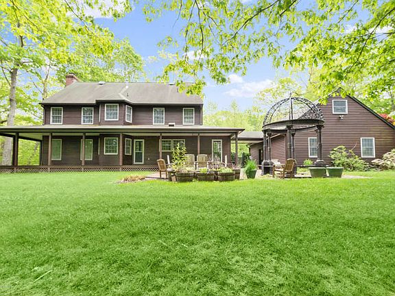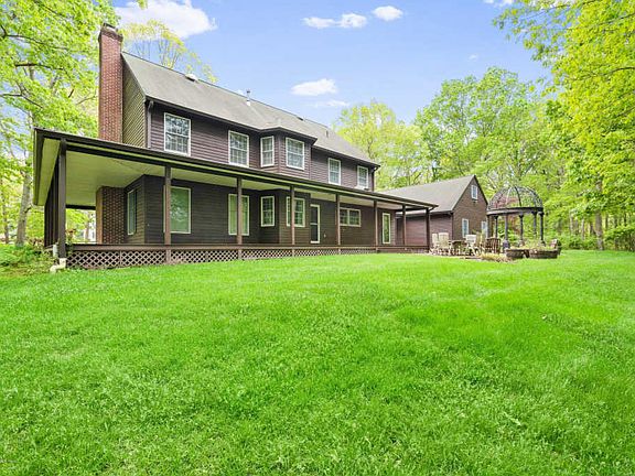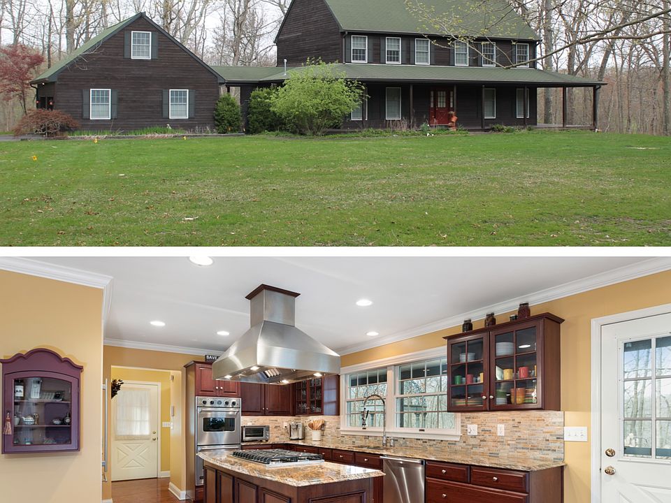 CUSTOM & QUALITY begin to describe this immaculate home! Beautiful wrap around porch w/privacy & nature surrounding you! This stunning home is located in a lovely & quaint development w/ park like setting & cul-de-sac location! This 4 bedroom beauty is situated on 5 acres of property w/ plenty of land to enjoy w/ an abundance of privacy. Love to cook!? This spectacular newly renovated kitchen features top of the line professional stainless steel Viking appliances, double wall oven, 36'' c-top & sub zero refrigerator! Custom cherry cabinets w/ gleaming granite counter tops!The large eat in kitchen has a bay window w/ seating & storage sending in plenty of light & peaceful views during your family dining. Can't forget the huge center island w/ custom viking hood vent.