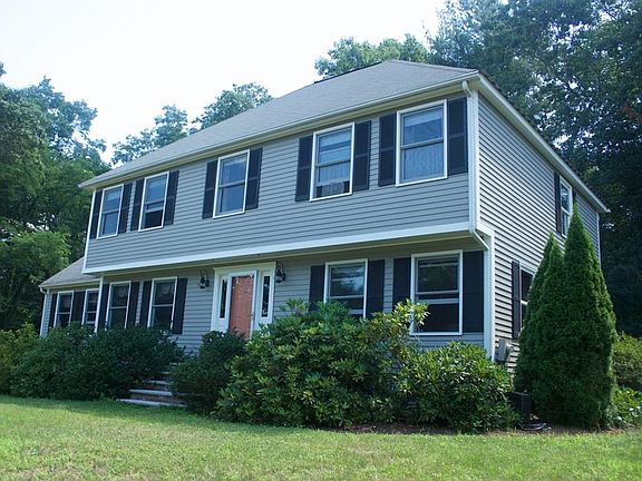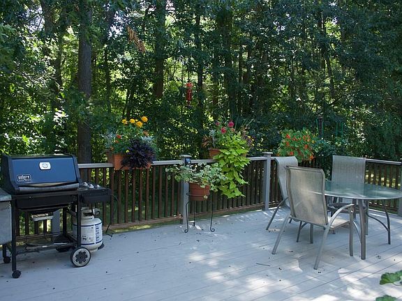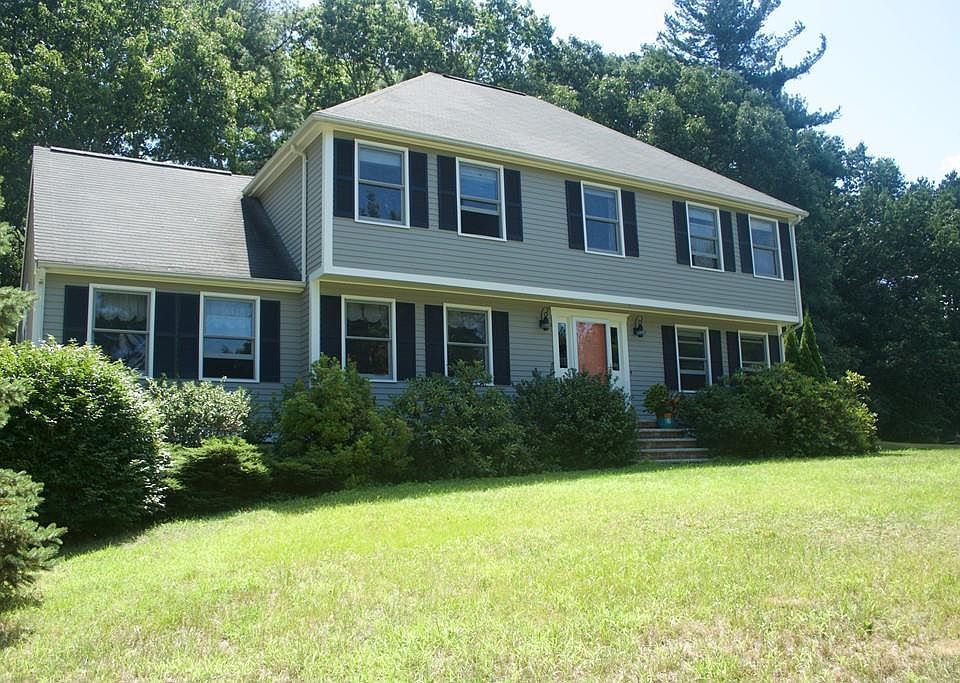 Country setting yet minutes to shopping and access to commuter routes. This sun-filled hip roof Colonial home perched on a knoll in a tree-lined neighborhood is a great find. Eight rooms, four bedrooms, two and a half bathrooms with a dining area off the kitchen for your enjoyment. The formal dining room is a great room for entertaining the family or guests. Enter the front-to-back living room with hardwood floor -- a wonderful place to relax -- or enjoy the oversized family room with the wood-burning fireplace and brick hearth leading to a spacious deck with a natural tree-lined rear lot for privacy. First-floor laundry and a very nice kitchen with picture windows overlooking the deck. Also, the master bedroom has a private bathroom and walk-in closet -- new wall-to-wall carpet in bedrooms. Plenty of storage in the full basement and two-car garage. Just a wonderful place to explore the local ponds and scenic village setting. This is a must-see home!