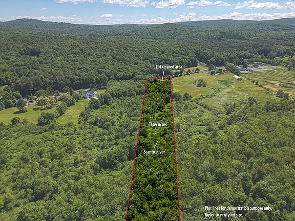 Building permit ready (buyer to apply) for this stunning 11+ acre lot with mountain views, lovely foliage and Scantic river in the back surrounding approximate building site (temporarily fenced) for your dream house on a street with beautiful properties. A well is already in place, along with a fenced (approximate home site). Welcome to your "country road".