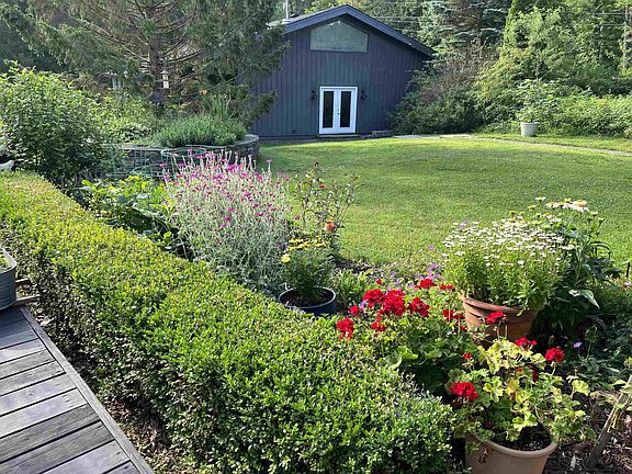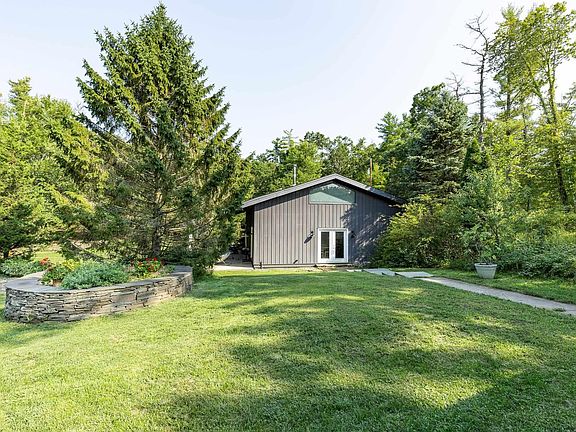 Extraordinary Opportunity, Home with Two Studios near Woodstock for Artists, Writers, and Entrepreneurs. This gorgeous 2.8 acre property with ponds and gardens includes a beautiful 2-bedroom contemporary farmhouse and two large studios with high ceilings and so much more. Imagine relaxing in this bright, spacious home with clean lines, exposed beams, and hardwood floors, then being surrounded by nature's beauty as you make your way to one of the amazing art studios in the massive studio building. You can spend all day there: This building includes a shower and a washer/dryer. Plus, there’s a great covered patio for working on large outdoor projects, such as sculpture. Need to think about that movie plot or new product design? Take a walk on the path around the lovely pond. There’s also a pasture and immaculate walk-in/walk-out horse barn. Behind the studio building, is a vegetable garden with raised beds and planters. Upon entering the main house you'll find a large foyer with a well-appointed kitchen to the right and a dining area to the left. A mudroom attached to the kitchen can be accessed by a covered breezeway from the detached, insulated 2-car garage. The mudroom features an exposed-stone wall, flagstone floor, and wood stove. (The house also has a climate-friendly heat pump and radiant heat flooring, along with a new Bosch hot-water-on-demand furnace.) The wide kitchen is open to the foyer and dining area to facilitate conversation and entertaining. From the dining room, stroll into a large living room with high ceilings, a wall-length bookcase, and great views of a wraparound wood deck, two ponds, abundant flowers and plants, and the woods beyond. Sliders lead to the deck and yet another building, which can be used as an office, den, writing or yoga studio (or third bedroom/guest room close to the house). Residents can choose between three places to work and create: in the house, in the small building, or in the studio building. The office in the house is part of the main sleeping suite on the home's second floor. The suite includes a bedroom and bath plus the office/den. If you count all the full baths, there are three: two in the house (one up, one down) and a third in the studio building. The high ceilings and lovely proportions in both the home and studio building provide numerous places to display art. The 1500 sq ft temperature-controlled studio building is divided into two ample studios/workspaces separated by a utility room and full bath. The first studio features a slop-sink hookup and wood stove. The second studio has a huge built-in bookcase and room for worktables, easels, cabinets, desks, files, computer stations, etc. (The larger studio was once used as a gallery. It’s big enough to be a dance/performance space. Or a very cool place to put guests or family overnight.) Each studio has double doors leading to the covered concrete patio and the pasture. The entire building has central air. Many artists/makers have only dreamed of working in this kind of environment. Writers would love it, too – as would anyone using their imagination to create something new and exciting. All in all, this is a unique spot in the Catskills: a dream home with two dream studios & two ponds; stone terraces alongside lawns, gardens, and woods; the ability to keep an animal and grow your own food in the fenced-in vegetable garden; the joy of living upstate in serene surroundings with amenities and culture only minutes or hours away. This property is in the hamlet of Ruby, approx 1 hour, 45 minutes from the George Washington Bridge. It is 9 miles to Woodstock; 8 miles to Saugerties; 6 miles to uptown Kingston; plus 20 minutes to Rhinebeck & 15 minutes to Bard College & Red Hook. Bard, Vassar & SUNY New Paltz have notable art museums, the Hessel and the Samuel Dworsky, respectively. An additional 3.9 acre lot is available. More information upon request.