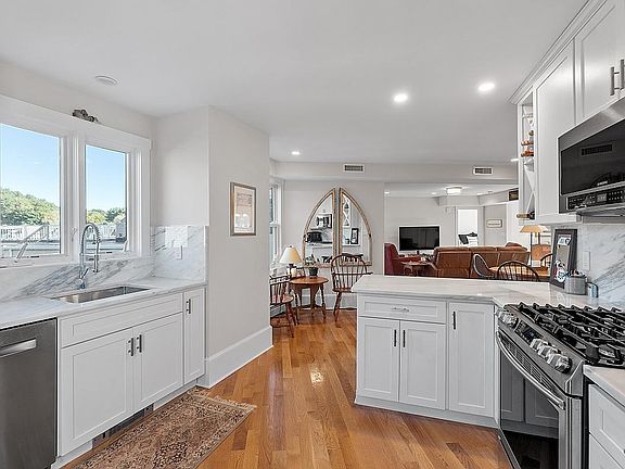 Pristine and private large residence awaits you in Manchester by the Sea! High quality finishes and hardwood floors throughout this sunny three bedroom two story residence in the heart of Manchester. This unit has an incredible marble kitchen, stainless steel appliances, two marble tiled baths and washer and dryer in unit. One bedroom and bath on main level, two bedrooms w bath on top floor level.