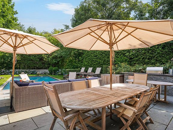 Perfectly located just minutes from world-class beaches, farm-to-table restaurants, acclaimed wineries, and charming village shops, the home blends classic East End style with modern comforts. Surrounded by lush, manicured landscaping and designed for seamless indoor-outdoor living, this serene property feels more like a private resort than a rental home.The expansive, fenced-in backyard is a true sanctuary, offering privacy, tranquility, and abundant space for outdoor living. A heated pool sits at the center, flanked by multiple sundecks and luxurious chaise loungers. Gather around the outdoor fire table, relax with morning coffee in the shade, or toast to golden hour with evening cocktails. The outdoor kitchencomplete with a charcoal BBQ, wood-fired pizza oven, and mini fridgemakes entertaining a breeze. There's even a pristine outdoor shower for rinsing off after a day at the beach.Inside, the home exudes Hamptons charm with breezy, sun-filled rooms, elegant furnishings, and elevated finishes throughout. The main living room offers a plush sectional, fireplace, and oversized bay windows overlooking the backyard. French doors lead to a peaceful patio with outdoor dining, a gas grill, and the perfect setting for evening drinks or alfresco meals. The adjacent dining room features a table for eight, ideal for memorable meals with family and friends.At the heart of the home, the gourmet kitchen is outfitted with top-tier appliances, a spacious island, and all the essentials for home cooking or entertaining. Its layout flows effortlessly into the living and dining areas and out to the pool and gardens, creating a sense of harmony and ease.The finished lower level adds additional space and comfort, with a second living area featuring two sofas, a flat-screen TV, fireplace, and a queen sleeper sofa. A full bath, walk-in shower, laundry area, and a bonus refrigerator, freezer, and commercial ice maker complete the space. Glass doors offer direct access to the pool and yard.Upstairs, the primary suite is a true retreat with a king bed, fireplace, sitting area, and vanity. The ensuite bath features double sinks, a large walk-in shower, and a deep jacuzzi tub. Two additional guest rooms share a jack-and-jill bath, while a first-floor queen suite with a private bath and jacuzzi tub offers single-level comfort and privacy. The lower level also has an additional sleeping area and a full bathroom, and a main-floor powder room adds extra convenience.Beyond the home, the best of the Hamptons awaits. Explore nearby Bridgehampton and Southampton, where you'll find upscale boutiques, art galleries, gourmet restaurants, and more. Spend the day at renowned local vineyards, browse antique shops, or take in a show at a nearby performing arts center. Just a short drive away, the area's beautiful beaches offer sweeping ocean views and soft sandideal for surfing, strolling, or enjoying a classic lobster roll by the water.Perfect for families, couples, or small groups, this Water Mill estate offers far more than a place to stayit's a complete Hamptons lifestyle experience. With refined style, resort-worthy amenities, and close proximity to everything the area has to offer, this home is not just a destinationit's the backdrop for unforgettable summer memories.*For stays over 7 nights, propane for pool heating is not included. A deposit will be collected and usage calculated at the end of the stay.Rental Registration: 250557