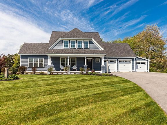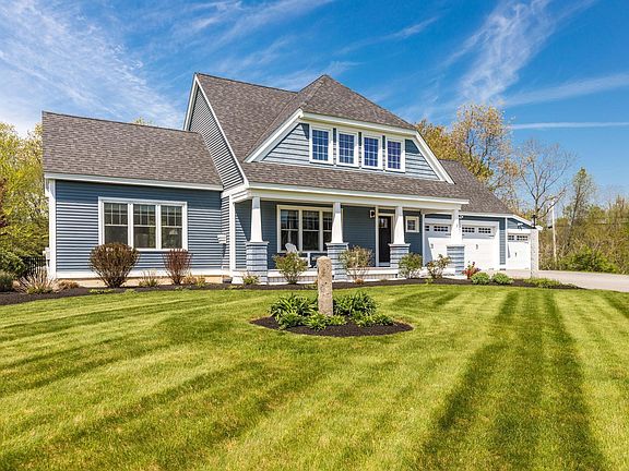 Welcome to this immaculate three bedroom, two and a half bath Cape-style home, custom built in 2019 and set on a beautifully landscaped 1.76 acre corner lot in Sewall Meadow neighborhood. Ideally adjacent to the NH Seacoast Greenway, an eight mile rail trail, and steps from Breakfast Hill Golf Club. Through the front entry you will find the heart of the home, an open-concept kitchen, dining, living area highlighted by a corner gas fireplace - perfect for entertaining. A separate family room with soaring 10'11" ceilings creates a relaxing space to unwind, while the three season sunroom with access to the rear deck, bluestone patio, and fenced backyard creates a private picturesque outdoor retreat. A desirable first floor primary bedroom with en-suite bath offers ease of one-level living and features a walk-in closet, sleek tiled shower, and soothing heated towel rack. Upstairs, you will find two additional bedrooms accompanied by a shared full bath, providing a comfortable living space for family and guests. A versatile second floor great room currently used as a home gym and heated three car garage completes this rare find. Assisted showings by appointment.