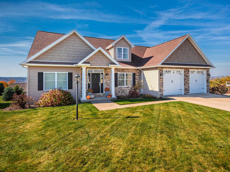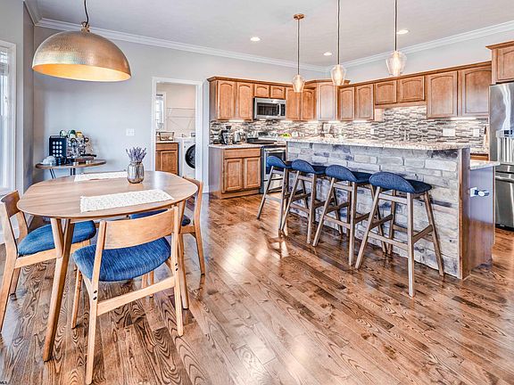 UPDATED RANCH w/ FLAT Yard + Finished Basement! Instant + Consistent WOWs abound here! Gaze in the wonderment that could be your VIEW from the covered composite deck! Hardwood floors throughout the main level beam w/ great natural light, 9' ceilings + OPEN spaces! Gas fireplace cozy's the living room; bay window warms the dining area. Deluxe kitchen has SS appliances, large island w/ bar, granite counters, soft-close drawers, and BONUS pantry in laundry/mud area. Groceries come right in from garage, TRUE main-level living! Private Owners Suite has updated bathroom w/ heated floors, tiled shower w/ 2x heads + glass door, 2x sinks, + entry-closet w/ window! 2nd floor w/ 2 Bedrooms/1 Bathroom, PLUS finished LL w/ wet-bar area, office, 4th Bedroom (has built-in Murphy Bed) + full Bathroom. Basement is HUGE centered on open space w/ entry-out to FLAT yard + patio. Dare to dream... THIS CAN BE IT! 3rd-Stall-Garage is perfect for home gym, boat, and all the toys! Cat 5 Wired + new HVAC (2022)... SEE this NOW!