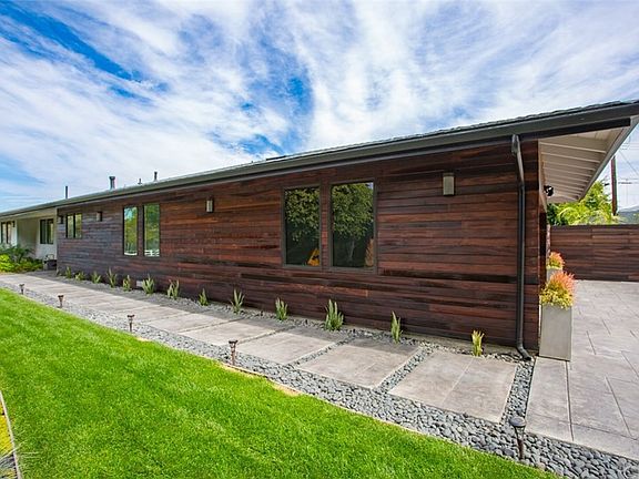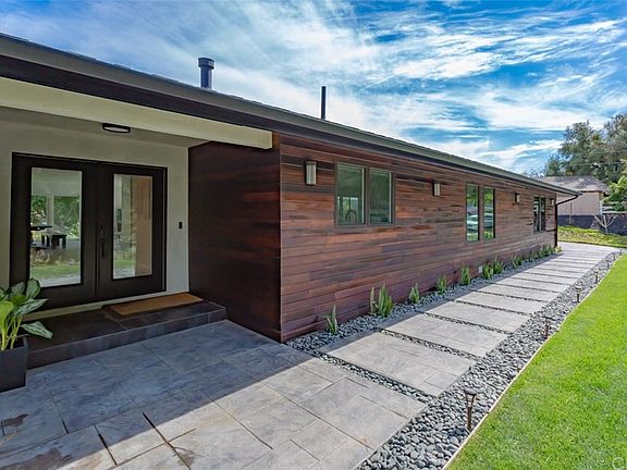 Contemporary home with open floorplan and entertaining backyard. House has been completely remodeled with additional 400sf. added. Kitchen features huge quartz island with seating, Kitchenaid appliances and white shaker style cabinets. Bathrooms are remodeled with a spa like feel. The entire flooring throughout the home is tile made to look like wood floors. All the windows and sliders have been updated to dual pane. New presidential composition roof installed last year. Home also features mature landscaping, led can lighting, tankless water heater, speakers in ceiling and outdoors, RV and boat parking with sliding gate, modern garage door, keyless entry, security system, huge custom fire pit, BBQ hook ups, cedar siding, smooth stucco and stamped concrete. Must see to appreciate!