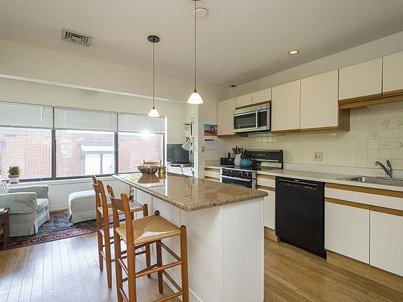 A true "oasis" in the city with beautifully landscaped lawns and gardens leads you to this outstanding waterfront triplex at Shipway Place in the historic Charlestown Navy Yard. This brick townhouse has an open living room with wood burning fireplace & sliding doors leading to a private deck with harbor and marina views. Tucked away in the corner is a large home office with built-ins and amazing light from skylight above. The formal dining room has cathedral ceilings & greenhouse windows and is adjacent to the kitchen with center island and seating. On the lower level is a master suite with sliding doors leading to a magnificient garden & patio ,en-suite bath and walk-in closet. The large guest bedroom has green house windows overlooking the lush shrubbery in the courtyard. All this with garage parking and ample storage in a friendly neighborhood within Boston city limits - one could not ask for more!