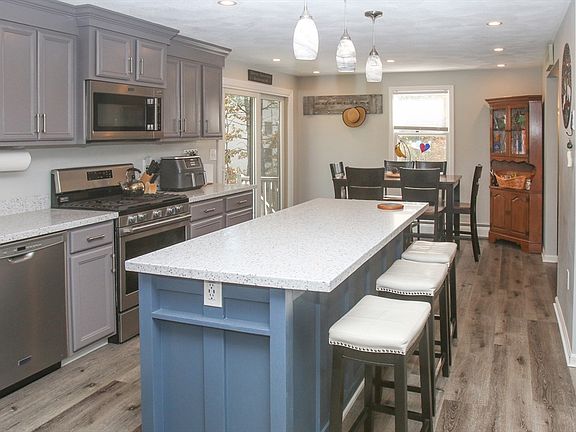 Looking for the perfect home to entertain? Your search ends here. This property offers a spacious kitchen w/ center island, perfect for gatherings, that opens to the dining area. The living room & guest room are just steps away, a convenient half bath with laundry completes the first floor. Upstairs, you’ll find 3 generous bedrooms, including a primary suite with an updated full bath featuring a walk-in shower, walk-in closet with new barn door, new skylight. Both upstairs bathrooms include LED/music exhaust fans for a touch of modern luxury. The finished lower level provides a versatile bonus room currently used as a fitness room, with exterior access leading directly to the hot tub patio, ideal for relaxing in cooler weather. Enjoy a three-year-new in-ground pool with a concrete pool deck & storage shed, a level yard with two fire-pit areas, plus electric hookup for a camper leading to wooded trails. A new metal roof & beautifully landscaped grounds complete this exceptional home.