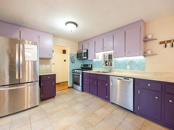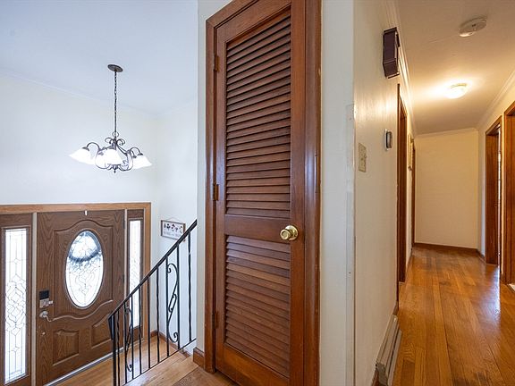 This inviting 3-bedroom, 2-bath split-level home is located in a neighborhood with easy access to the highway and area amenities. It sits on a fenced yard with a brand-new patio. The spacious kitchen features a pantry, offers direct access to the yard, and flows seamlessly into the dining room. A large dining room opens to the bright living room, complete with a fireplace and bay window. Down the hall are three comfortable bedrooms and a renovated full bathroom showcasing a large tiled shower. The lower level provides a fourth bedroom or office and full bathroom with walk-in shower. A generous family room with a second fireplace creates an ideal gathering space. A bonus room at the back of the home offers flexibility for play, fitness, or hobbies. Completing the lower level is a convenient laundry room and a walk-out to the tree-lined yard. Important features include: heat system 2020, central air 2024, replacement windows, new heat pump, mini-split in lower level and solar panels.