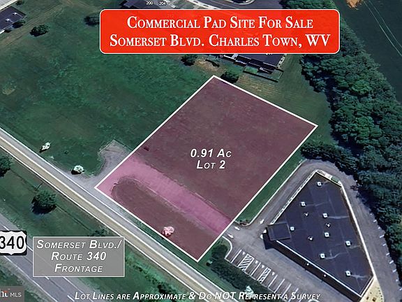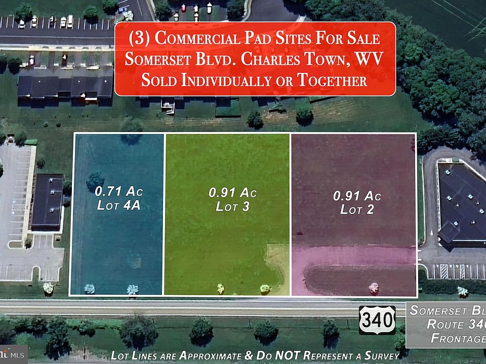 Prime Commercial Pad Sites located at Windmill Crossing in Charles Town WV with Route 340 visibility. Three lots are listed individually which are all adjoined. This lot is 0.91 acres but we can comprise a total of over 2.5 acres with all 3 pads that are listed. Join other commercial enterprises in this area including Sheetz, Tractor Supply, Aldi, WVU Urgent Care, My Eye Doctor, Mountainview Professional Offices, Charles Town Family Dental etc. Currently there are several hundred homes under construction and future home sites to be built in the thousands all less than three miles from this site.