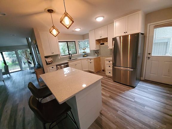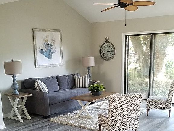 Peaceful serenity awaits you in this spacious, newly renovated 2 bedroom, 2 bath home in Moss Creek. The living room has a vaulted ceiling, fireplace, and huge patio windows with a view of the lush backyard garden. The all new kitchen features white shaker cabinets, quartz counter tops, new LG appliances with a ginormous 25 cubic foot refrigerator, and double oven stove (on order). Two newly renovated bathrooms offer style and function, including one with a jacuzzi tub. Each of the bedrooms features barn door closets with the master having a walk-in and closet organizer. A/C unit is one year old.