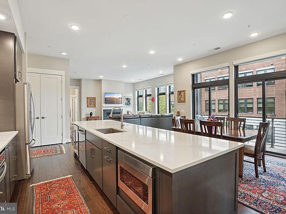 DOWNTOWN LEESBURG living at its finest! Rarely available and sought after King Street Station, uniquely situated with easy access to the Dulles Toll Road and a short walk to downtown Leesburg and all its charm. Live amongst the local shops, dining, entertainment, parks and more, including direct access to the W&OD Trail! This 2BR, 2 Full BA + den corner unit is replete with natural light and overlooks the community park/trail below. 10’ ceilings throughout the open floor plan, ideal for convenient living and gracious entertaining! Featuring wide plank hardwood flooring, a gourmet kitchen w 42” custom cabinet and professional grade appliances, and a spacious living area w gas fireplace. Also enjoy your private balcony off the dining area. The light filled corner Owner’s suite boasts a spacious walk-in closet, a luxury bath w frameless glass shower enclosure, and upgraded designer tile. The guest bedroom is both spacious and private. Separate den/office with glass doors opens to living area and natural light beyond. Guests enter through the secure, modern lobby and can take the elevator or stairs. Unit includes a 1-car garage with storage space, private driveway parking, and easy access to side stairs or elevator to unit! *HURRY*