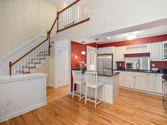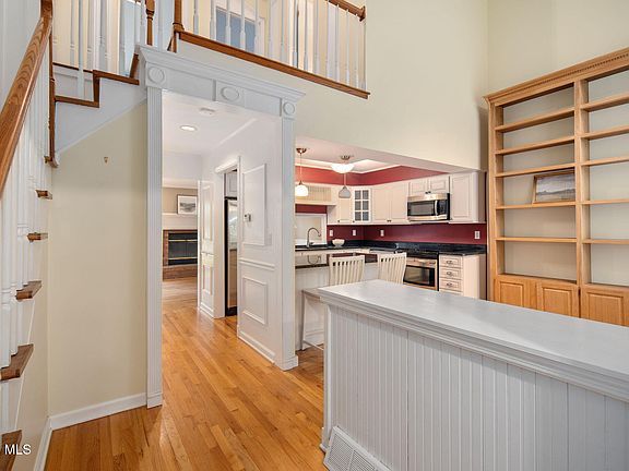 Beautiful Custom townhome by Marini that features a fabulous location and gorgeous oak hardwood floors throughout ! Small foyer leads to a vaulted ceiling dining area with built in shelving next to well thought out kitchen .Over sink is access pass through to living room that features a warm fireplace and sliding glass door to