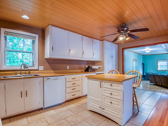 Seven room, two-bedroom home on 1.23 Acre lot located at the edge of the White Mountain National forest. The first-floor features a large spacious living room, with pellet stove for family gatherings and a nice modern kitchen with center island and formal dining room. The two bedrooms are also on the first floor along with a full bath. In the basement, you will find a nice family room. There is a separate laundry room area with a small wood stove for those cold winter nights. Home is heated with forced hot water System 2000 along with the pellet and wood stove. Plenty of storage with a two-car heated garage and separate one car garage. Within walking distance to a hiking trail and a popular local swimming hole. This home could also serve as a nice second home because of its proximity to Wildcat Ski Area and Great Glen Trails and all the adventures the White Mountain National Forest and Great North Woods have to offer.