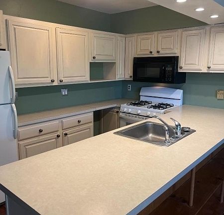 Renovated end unitLarge family room downstairsFull-size washer and dryerTwo large bedroomsLarge wrap-around deckLots of storage