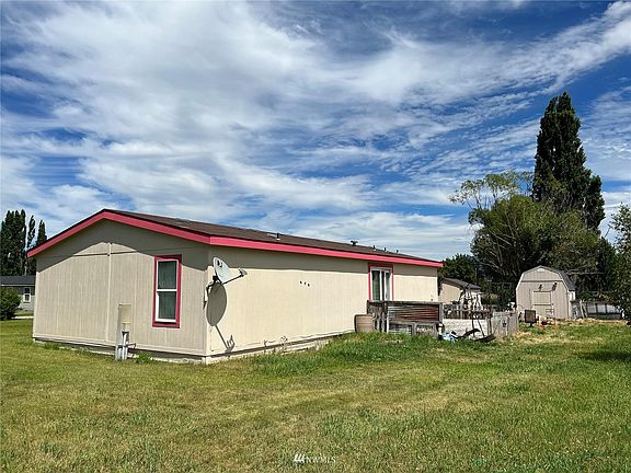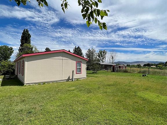 Omak/Omak Flats - Desirable Location minutes from downtown! Manufactured Home on Approximately 1 acre with Irrigation. Home features 3 bedrooms/2 bathrooms, living room, kitchen with custom cabinets & eating area, industrial bar, laundry/utility room, and vaulted ceilings. All Appliances Stay. Primary bedroom with on-suite and customized rock bathtub/shower. Outbuildings, barn with completely fenced area, garden shed on cement pad and garden, & RV parking with attached storage shed. OID irrigation. Shared Community Well. Community Lawn Area. $229,900 H-3077/MLS-1962654