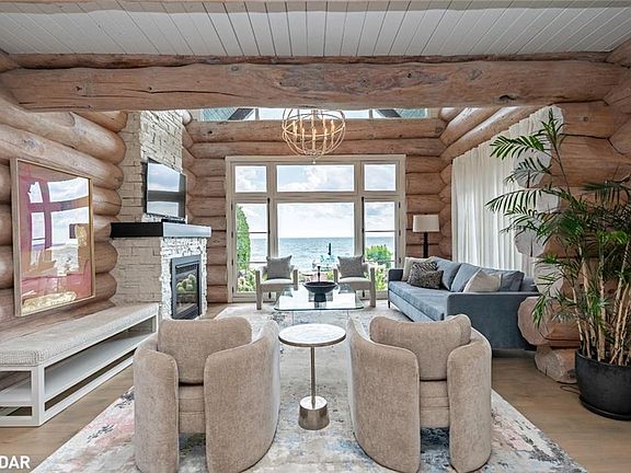 FULLY RENOVATED WATERFRONT MASTERPIECE WITH 100 FT OF PRIVATE SHORELINE, A LUXURY GUEST HOUSE, & METICULOUSLY LANDSCAPED RESORT-STYLE GROUNDS! Set on 0.48 acres along Lake Simcoe, this estate invites you to experience waterfront living at its finest. Dramatic rooflines and high-end finishes set the stage, while expert landscaping frames the home with gardens, flagstone pathways, a tranquil pond, and a firepit lounge. With 100 ft of shoreline, enjoy a 70 ft Dock-In-A-Box system with a boat lift, a patio lounge, and an outdoor bar designed for effortless entertaining. A wraparound deck with glass railings showcases panoramic views of the lake, and a luxury guest house with heated floors provides year-round comfort for visitors. The garage features 9-foot ceilings, a 16-foot-wide door, a slat wall, cabinetry, pristine epoxy flooring, and a stand-up attic, with space for 6 additional vehicles in the driveway. Inside, cathedral ceilings and grand windows in the open-concept living area frame breathtaking water views, while a gas fireplace creates warmth and ambiance. The kitchen offers a walkout to the deck, a 5x8 ft island, Cambria Quartz counters and backsplash, and integrated high-end appliances, flowing into a laundry room with heated floors. Upstairs, the primary retreat is a serene escape with built-in cabinetry, a platform bed, a spa-inspired ensuite, and lake views - complemented by two additional bedrooms and a family bath. The lower level extends the living space with a rec room anchored by a second gas fireplace, an office, and a modern 2-piece bath. Recently renovated with luxury upgrades, including a gas furnace, wool carpet, and 2 updated washrooms, this estate also comes with an included generator for year-round peace of mind. Perfectly placed near Barrie and Orillia, and surrounded by golf, hiking, and Horseshoe Valley’s premier skiing and spa, this #HomeToStay offers an unmatched blend of natural beauty, luxury living, and modern convenience.