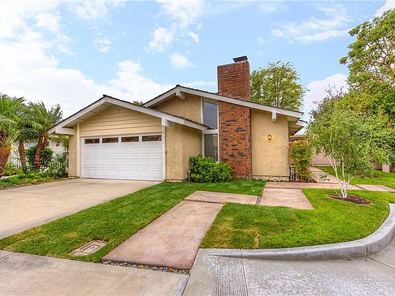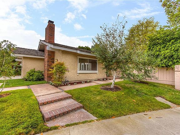 The desirable SINGLE LEVEL layout of this 3-bedroom home creates a striking impression with its bright and sunny atmosphere. Vaulted ceilings. Recessed lighting. Skylights. Freshly painted. New carpet throughout. Fireplace in the living room. The master bedroom, with WALK-IN CLOSET, opens onto an atrium offering a great place to relax. Both secondary bedrooms are large. One bedroom is currently configured as an office and has French doors opening to the back yard. The upgraded kitchen has an abundance of cabinets with glass door inserts, incredible COUNTER SPACE, and an extra-large garden window. The kitchen flows effortlessly into the family room/dining room with its wall of windows and French doors, allowing an unobstructed view of the tranquil private yard. The tiled patio area, with patio cover, looks onto one of the LARGEST YARDS in the community, with its old oak tree & incredible assortment of other mature landscaping & fruit trees. Your guests will be captivated by the attractive outdoor space frequented by many humming birds & other birdlife. The two car attached garage and LONG DRIVEWAY enrich the home's value. The pool & spa are just steps from the home. Schools are within easy walking distance & shopping and dining are close by. No Mello-Roos.