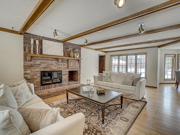 Welcome home to this one owner, custom built traditional two story in the Mounds View school district near the West Rec Center in North Oaks. Spacious, open floor plan with 4 bedrooms up and main floor laundry. Gourmet kitchen includes gas cooktop, granite counters, center island, double wall ovens, serving bar and desk space. Informal dining room walks out to the composite deck with private backyard and 3 season gazebo. Generous sized family room off the kitchen with hardwood flooring, wood burning fireplace, wood beams, and built-in wet bar for easy day to day living. Private owner's suite with large walk-in closet, office/den area and private bath. Finished lower level includes a family room, additional bedroom, 3/4 bath and plenty of storage space. Updated bathrooms throughout home along with new paint, carpet, newer Pella windows and more! Steel siding and brick accents. Large 3 car garage opens to spacious mudroom and laundry area. Ready to move right in and enjoy!