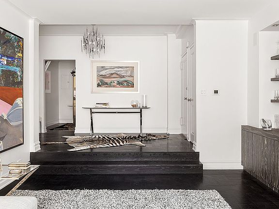Welcome home to this impeccably renovated, elegant, and sophisticated 2-bedroom, 2-bathroom residence in one of Sutton Place's premier buildings. The expansive foyer leads you into the large east-facing sunken living room with a wood-burning fireplace and views of the East River. Ample storage space is provided by the custom wood cabinets within the living room and two spacious walk-in closets adjacent in the foyer. The windowed kitchen boasts stainless steel appliances, a farmhouse sink, and plenty of cabinet space. The adjacent dining room is adorned with custom millwork and is perfect for a banquet-style seating arrangement.