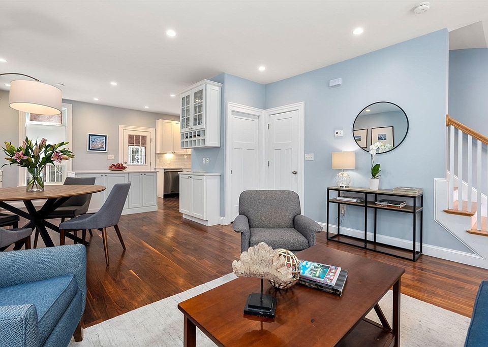 This handsome Mansard Victorian single-family was substantially renovated in 2016 and is in pristine condition! The open living-dining area features a custom designed high-end kitchen with Viking appliances, a striking quartz island & countertops with Carrera marble backsplash. First floor has 9’ ceilings, oversized windows, gorgeous walnut hardwoods and a half-bath. Top floor features a large primary bedroom, second bedroom, full bath with glass shower, and a washer/dryer. Lower level – with its own entrance and a mudroom - boasts great natural light and features a family room, another full renovated bath and a third bedroom. High efficiency heating system, Navien on-demand hot water & central air. Fenced-in yard is great for kids and pets, plus this sought-after neighborhood has lots of well-kept parks & playgrounds. Great condo or townhouse alternative – no HOA fee! Just blocks to subway, Longwood Medical, Pierce School & the cafes/restaurants of Brookline Village.