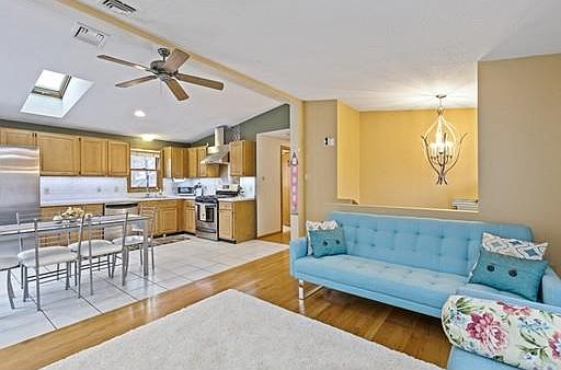 Looking for a modern home, 2 Tedesco is it. A cathedral ceiling, open floor plan awaits you. Light and airy living room with an accent wall of wood opens to a kitchen dining area. A wrap around deck off the dining for alfresco dining in the good weather. This home has been carefully improved with touches to continue the modern feel, including a new sleek stainless steel hood over the range. The master bedroom has its own good size bath and double closets. Two other bedrooms and a bathroom on this floor. Downstairs has enough space and could be outfitted to be a separate pad or you could use it all for yourself. Large family room open with kitchen, a bedroom with sliders to the back yard and an office, which they currently use as a music room leads out to the mudroom area.All of this on a cul-de-sac, with a private fenced in yard. Easy access to highway to get to work and the school bus picks up right outside the door! Snatch this one up and be in for the holidays.