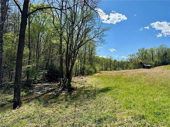 10 acres located outside the city limits of King in Stokes County, North Carolina (w/additional land available) comprised of open hay fields, a hardwood forest, public sewer and water, frontage on Goff Creek, and protective covenants. Lot is served by gravel driveway with geofabric underneath. Stick/site built only. Barndominium OK. 2.5 mile drive (or less) from local Elementary, Middle and High School, 2 mile drive to downtown King and a 20 minute drive to downtown Winston Salem, NC. Agent owned. Visit listing agent's website for more details, use interactive map, access attachments, and watch video tour