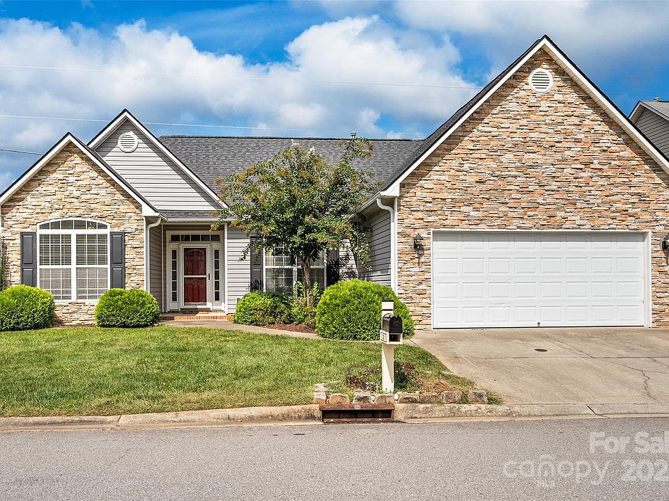 Welcome to Hadley Park in Arden/Skyland, where single-level living meets ultimate convenience! This beautifully maintained 3-bedroom, 2-bath home offers 1,788 sq ft of easy-flow space designed for comfort and functionality. The exterior features timeless stone accents and tidy landscaping, setting the tone for what awaits inside.