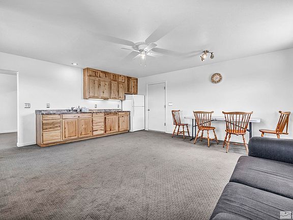This one-of-a-kind 2-bedroom, 2-bath home offers unmatched potential for those seeking something truly special. With its bold metal exterior and sturdy metal frame, this home is as unique as it gets. The standout feature is the expansive fully insulated 2,000 sqft detached shop, plus a 1,200 sqft carport and multiple garages—perfect for hobbyists, car enthusiasts, or anyone needing extra storage space. There’s even room for multiple RVs!, The flexible layout is perfect for multi-generational living, hosting guests or a rental opportunity. The upper level features a cozy bedroom and bathroom, while the lower level is a private mother-in-law suite with its own entrance, living space, bedroom, and full bathroom. But the real magic happens outdoors. The upper-level wrap-around balcony offers 360-degree panoramic views that will leave you breathless, whether it’s sunrise over the mountains or a sunset with a view of the countryside. Located in a peaceful, serene setting, this home offers a perfect escape, while still being just a short drive from the amenities of Yerington and the surrounding area. Whether you're looking to create a retreat, need space for your vehicles and projects, or simply want a home that offers something different, this property is a true hidden gem. Take a virtual tour on YouTube! Contact listing agent for the link. Buyer's agent are responsible for notifying their clients that there may be listening and recording devices on the property, please consider this your formal notice, and ensure your clients are notified prior to entering the property. All information provided to be verified by the buyer and buyers agent. Final walk through constitutes satisfaction with information supplied herein and satisfaction with condition of the property as well as any completed repairs (if any). Seller will not close escrow until a signed final walk through or waiver has been received.