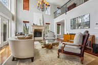 - First Floor Bedroom, First Floor Full Bath, Beamed Ceilings, Built-in Features, Cathedral Ceiling(s), Chandelier, Chefs Kitchen, Crown Molding, Double Vanity, Eat-in Kitchen, Entertainment Cabinets, Entrance Foyer, Formal Dining, Granite Counters, Kitchen Island, Primary Bathroom, Open Floorplan, Open Kitchen, Pantry, Recessed Lighting, Smart Thermostat, Storage
