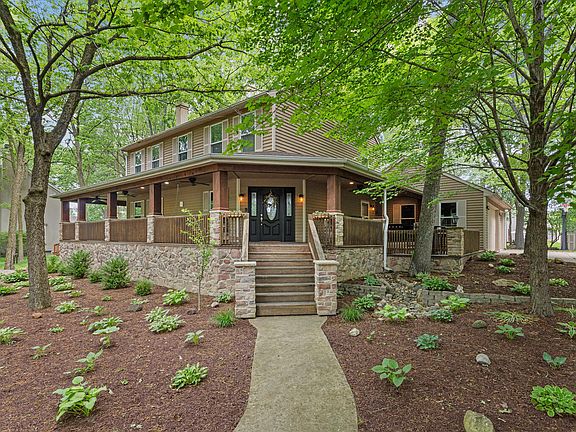 Welcome to this beautifully maintained and meticulously updated home that will win you over from the exterior in. Starting with its eye-catching front porch, this spacious property features 4 bedrooms and 3 full bathrooms, offering ample space for comfortable living. Upon entering, you'll discover two inviting living spaces, one of which boasts a cozy fireplace, perfect for relaxing evenings. The large, open kitchen is a chef's dream, ideal for entertaining with its Amish-crafted knotty oak cabinetry and stunning quartz countertops. The fully finished basement adds even more living space, including a versatile recreation room and an exercise room, providing endless possibilities for customization. Enjoy the bright and airy family room addition with new windows, a perfect spot to unwind and soak in the natural light. Storage will never be an issue in this home, with abundant closet space throughout. The property also features a spacious 3-car garage with additional storage options and an attic, plus a convenient garden shed as well as under deck storage. This home truly has it all, combining modern amenities with timeless charm. Don't miss the opportunity to make it yours! Other updates include remodeled main level in 2021, basement in 2017, and upstairs in 2024. New trim, doors & paint. Heated floors in upstairs bathroom. HVAC in 2018 & 2022.