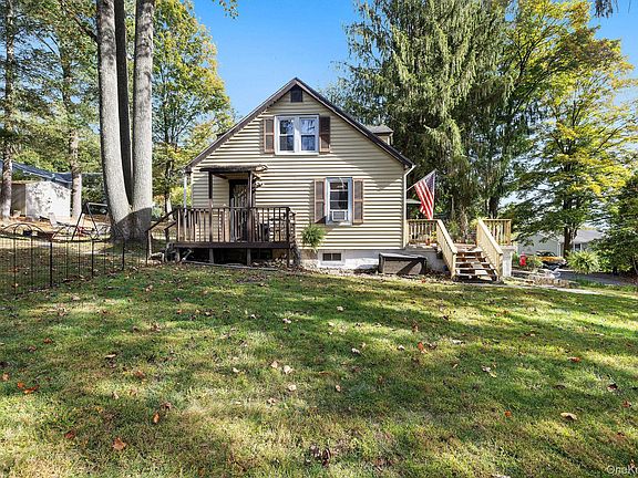Welcome to this charming 3 bedroom 1 bathroom Cape Cod style home situated on a spacious corner lot in Lake Carmel. With classic curb appeal and timeless charm, this home offers a warm and inviting atmosphere from the minute you step inside. Once you enter the home, you will find a spacious and functional layout featuring large living room with hardwood floors throughout, a convenient first floor bedroom and a full bathroom. The living room has a beautiful fireplace surrounded by built in bookshelves. The kitchen is a great layout with access to the side and backyard. Upstairs has two more bedrooms and an area to make a 2 bathroom. The basement is great for storage, has the washer and dryer and garage area.