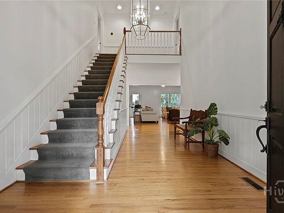Welcome to this charming Low Country home with a wrap around porch at The Landings. This spacious 4BR, 3.5BA property has wood floors and 9’+ ceilings throughout most of the home. The updated gourmet kitchen features high end stainless appliances, shaker cabinets and designer counters. The main floor also includes a dining room, office and family room with views of the golf course. Unwind in the spacious primary bedroom located on the 1st floor with a large bath, generous storage space and views of the golf course. There are 2 additional bedrooms and a bath on the second floor as well as 2 walk in attic spaces. The bonus room can flex as a bedroom, office or play room and includes a full bath. Enjoy the outdoors in the screened porch, deck or playhouse! Additional features include sprinklers with well, encapsulated crawl space, extensive tree work and a 2 car+ golf cart garage. Some amenities require membership.