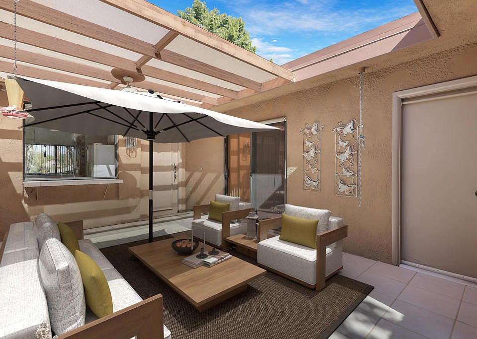This one-bedroom, one-and-a-half-bath condo is ideal for low-maintenance living or relaxing seasonal getaways. The front courtyard enjoys plenty of morning sun, perfect for sipping coffee, while the back patio offers a park-like setting with trees, lake views, water features and glimpses of the mountains. Sunrise Country Club is a guard-gated community with 746 residential condos, an 18-hole golf course, 9 championship tennis courts, 10 Pickle Ball courts and 21 swimming pools and 19 spas. Club amenities include golf, tennis, fitness center, clubhouse dining room & grill at discounted prices. Conveniently located in Rancho Mirage, it's close to shopping, dining, and entertainment at The River and El Paseo, with Eisenhower Hospital just minutes away. Palm Springs International Airport is only a 15-minute drive.