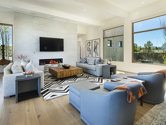 Las Campanas at its finest. Experience the ultimate Las Campanas lifestyle with this Tour de Force, 2020-built masterpiece by award winning builder, Frank Yardman. This sophisticated 3 bedroom home plus office, excersise room, and 3-car garage stuns with beautiful Sangre De Cristo and Jemez Mountain views captivates with modern architecture and luxury finishes. This extraordinary Las Campanas home, masterfully incorporates seamless indoor/outdoor living and and celebrates the true essence of the Santa Fe lifestyle. Design features include an open concept living room and dining room, ideal for entertaining with views, sliding retractable glass doors to the outdoor living areas, gas fireplace, and a wetbar with a prep sink, 2 wine coolers and a wine glass dishwasher. The designer chef's kitchen impresses with state of the art Thermadore appliances, an expansive breakfast bar with surround seating, built-in pantry, plus a butler's pantry with a prep sink and 2 drawer beverage refrigerator. The private owner's suite delights with stunning mountain views, and a luxurious spa-like bath with a walk-in shower, soaking tub, dual vanities, vanitiy closet, and 2 large walk-in closets. Separate from the owner's suite are 2 well-appointed ensuite bedrooms. Additional design features include a spacious office with custom built-in cabintery, a secondary office or exercise room, a generous media room or den located off the kitchen, and an outdloor living area with a modern gas firetable, outdoor dining areas, and a Built-in BBQ with surround seating. Addtional highlights include hardwood and tile flooring throughout, crisp white plaster walls and natural light throughout, surround portals, and a welcoming front entrance with a tranquil water feature. Sited within close proximity to The Club at Las Campanas Clubhouse, (2) Jack Nicklaus Signature Golf Courses, Spa, Fitness and Tennis Center, and Equestrian Center, this unique offering is truly a special opportunity and move-in ready!
