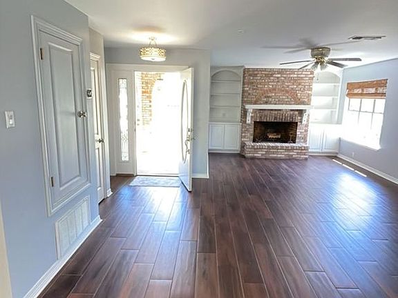 This spacious 3-bedroom, 2-bathroom home offers approximately 1,935 sq. ft. of comfortable living space with no carpet throughout for easy maintenance. The family room features a wood-burning fireplace flanked by built-in bookshelves, creating a warm and inviting space. The home also includes a formal dining room perfect for entertaining.
