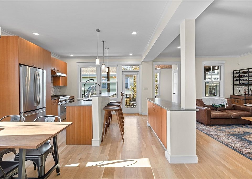 **Open House cancelled, accepted offer** This 3-bed, 2.5-bath duplex blends sleek design with neighborhood charm. Built in 2020 by an MIT-trained architect, it features an open layout with natural wood accents, stainless appliances, and a central island perfect for casual dinners or wine nights. Two outdoor spaces invite morning coffee or sunset hangs, while covered parking adds convenience. The private primary suite offers a calm retreat, and the lower level includes two airy bedrooms, a chic bath, and a flexible living area for movies, yoga, or creative projects. Just moments from the Green Line, local cafés, bookstores, bike paths, and Somerville’s arts scene—this home pairs modern comfort with a vibrant, walkable lifestyle.