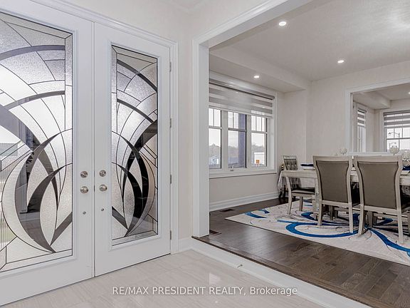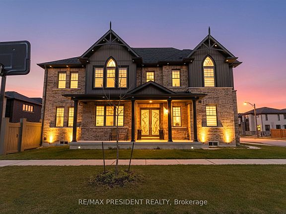 Welcome to this stunning 2023-built, 3,022 sq ft brick detached corner-lot home offering a bright, luxurious, and highly functional layout with modern upgrades throughout. Over 100k value in upgrades. 9'ft Ceilings on Main and Second. TWO GRAND BEDROOMS WITH ENSUITES & WALKIN CLOSETS. The home features an impressive 8 ft double-door entry, smart lighting controlled by an app, pot lights on the exterior and main floor, upgraded porcelain tiles, and hardwood flooring in the main living areas. Enjoy separate living, dining, and family rooms along with a spacious modern kitchen equipped with Quartz countertops, Quartz Backsplash, a gas stove, double-door smart, Oak Stairs, Samsung fridge, extended cabinets, and a large breakfast area; all illuminated by huge windows that flood the home with natural light. Huge Primary bedroom with extra spacious walk-in closet and a SPA-style Ensuite with Double sink vanity, Soaker Tub and Glass Standing shower. The second floor offers 4 spacious bedrooms and 3 full bathrooms, including a convenient Jack & Jill ensuite so every bedroom has direct bathroom access, plus a large second-floor laundry room for added convenience. ALL BEDROOMS have WALK-IN Closets. Additional features include elegant metal spindle railings, a 200-amp electrical panel, a double-car garage, and a massive open-concept unfinished basement with endless potential for future customization. This exceptional home combines space, luxury, and modern technology, perfect for families seeking comfort and contemporary living in a desirable community. The Spacious Laundry room is on the second floor with a utility washer sink for convenience plus a huge closet for storage. Come take a look at this beautiful home today, before it sells.