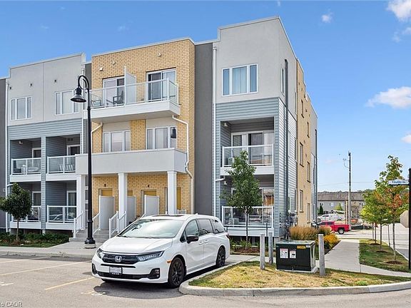 Bright and airy 2 story 2 bedroom 2 full + 1/2 bath stacked townhome condominium in Huron Park. Great location, minutes to the expressway Hwy 7/8 and Hwy 401. Walking distance to shopping, restaurants, public transit, walking trails and more! This Bright end unit features an open concept main floor with extra windows and ample of natural light. Custom kitchen with Stainless Steel Appliances. Large living room with sliding patio door to your private balcony. All window coverings are included. A 2pc powder room is located a couple of stairs down, conveniently tucked away in the hall. Main floor has quality laminate flooring for easy upkeep. Lower level features 2 bedrooms, 2 baths, laundry /utility and linen closet. The primary suite includes a 3pc Ensuite complete with quartz counters, a walk-in tiled shower with glass enclosure and a large walk in closet. Main bath is a 4 pc with a tub. Upgrades include lighting, quartz counters throughout, bathroom and kitchen fixtures. 1 Assigned parking spot close to the front door. Wait there is more! 1 GB high speed internet with Bell is included (approximate $100/m value) Unit is Energy efficient for your comfort and low utility bills. On demand water heater for efficiency. Water heater and softener combo rental.